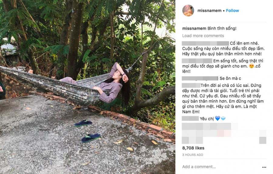 Giữa tâm bão scandal, Trường Giang lộ rõ sự mệt mỏi còn Nhã Phương đã chính thức lên tiếng khẳng định mình vẫn ổn. Riêng phía Nam Em, sau khi nhập viện vì không chịu được áp lực dư luận, mới đây trên tài khoản instagram, người đẹp đã cập nhật hình ảnh cũng như dòng trạng thái mới. Status "Bình tĩnh sống" cho thấy Nam Em đang cố gắng lấy lại tinh thần sau những ngày đầy rẫy sóng gió vừa qua.