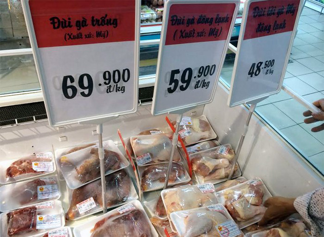 Bò rẻ như vậy, nhưng đùi gà Mỹ còn có giá rẻ đến giật mình hơn. 1kg đùi gà Mỹ chỉ có giá rơi vào khoảng 10.000 tới 20.000đ. Tính từ đầu năm 2017 tới hết 15/3/2018, tổng lượng thịt gà nhập khẩu vào Việt Nam lên tới 22.500 tấn các loại, tương đương trị giá 19,8 triệu USD. Tính ra, trung bình 1kg gà nhập chỉ có giá khoảng 0,88USD, tương đường 20.000đ. Xuất xứ các loại gà này là từ Mỹ, Brazil và Hàn Quốc là chủ yếu.