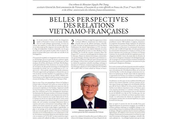 Hiện nay bài báo này đang gây xôn xao, không phải do nội dung của nó, mà do bài báo được in trong trang quảng cáo của tờ báo Pháp, với chi phí có thể lên đến hơn 150,000 euro. Bài báo mang tựa đề “Triển vọng tốt đẹp của quan hệ Việt-Pháp” và dài hơn 2,400 từ, nhấn mạnh “Pháp luôn là đối tác hàng đầu của Việt Nam”, và rằng hiện nay hai nước “có nhiều điều kiện thuận lợi để tăng cường quan hệ”.
