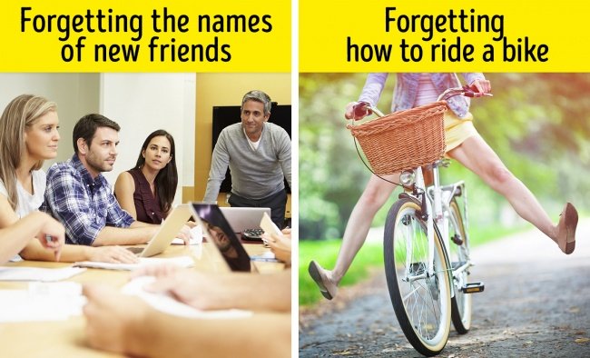 Một dấu hiệu rõ ràng của bệnh Alzheimer là sự mất cân bằng trí nhớ, trở nên khó khăn hơn để ghi nhớ và tiếp thu thông tin mới. Đồng thời, các kỹ năng lâu ngày dần dần mất đi như khả năng đi xe đạp, đan hoặc vẽ.