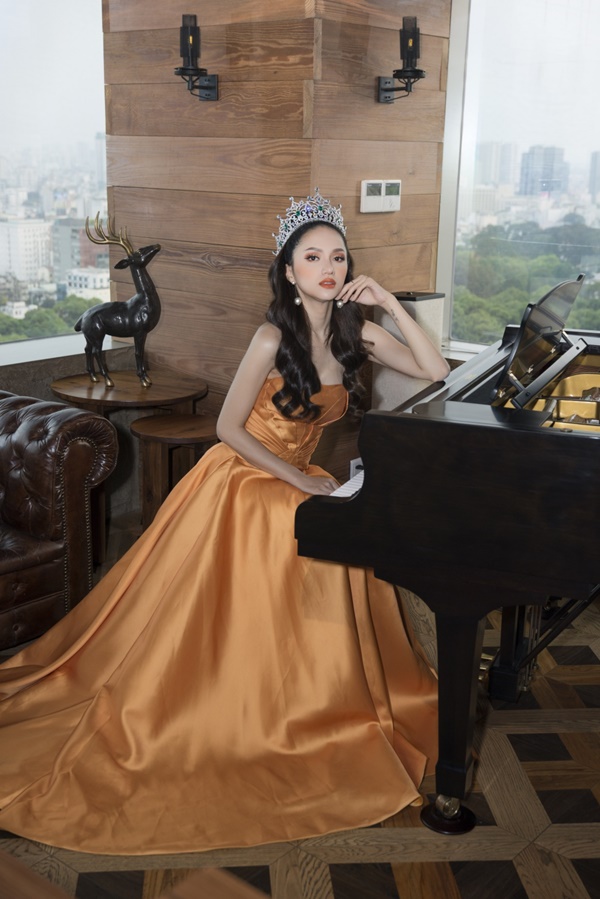 Tại sự kiện, Hương Giang trở thành "tâm điểm" của sự chú ý khi diện bộ váy cam lộng lẫy và nổi bật.