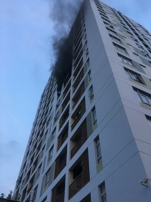 Người dân tại chung cư đã thoát hiểm ra ngoài và sau khoảng 30 phút, đám cháy được dập tắt hoàn toàn.