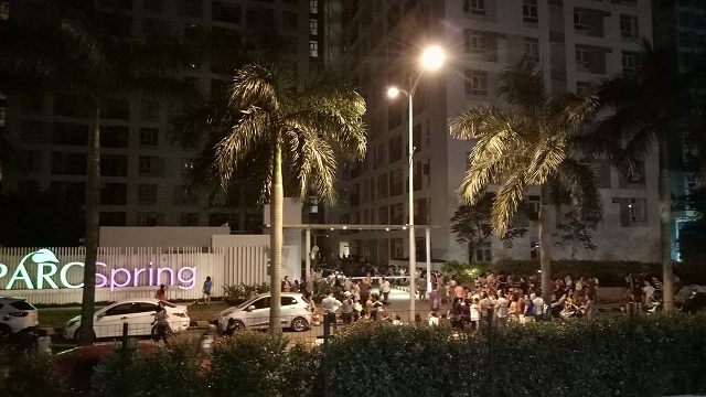 Một người dân tại chung cư ParcSpring cho biết, chuông báo cháy tại chung cư hoạt động tốt và cư dân chung cư mới diễn tập PCCC vào hôm qua.