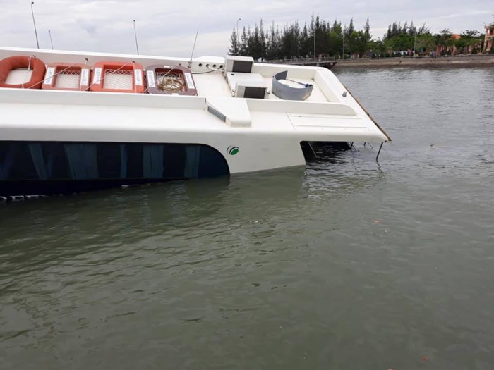 Chiếc tàu bị chìm hơn nửa thân sau khi cập bến