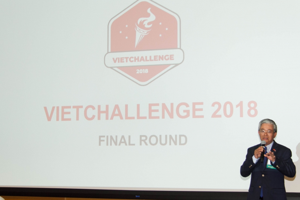 Đại sứ Phạm Quang Vinh phát biểu tại Vòng chung kết cuộc thi khởi nghiệp toàn cầu VietChallenge 2018.