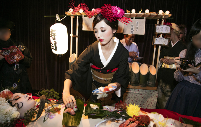 Phong cách này có từ thời Samurai và là một phần của văn hóa Geisha. Thời ấy, các buổi tiệc Nyotaimori được tổ chức để chào mừng các chiến binh khải hoàn trở về.