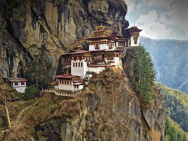 Bhutan là một vương quốc nhỏ bé nằm dưới chân núi của dãy Himalaya, ở giữa Trung Quốc và Ấn Độ. Mỗi năm, đất nước này chỉ đón khoảng 10.000 du khách đến. Điểm hấp dẫn nhất của Bhutan là vẻ đẹp nguyên sơ, đặc biệt là tu viện Paro Taktsang nằm trên đỉnh núi cao, giữa những vách núi đá dựng đứng.