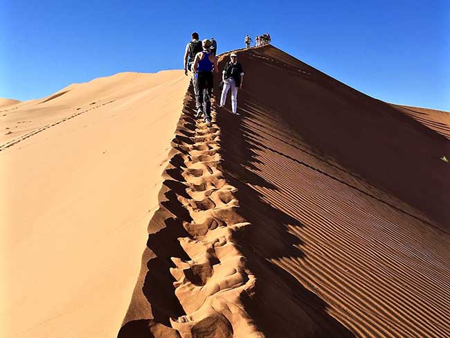 Những cồn cát ở Namibia luôn là lời mời đầy hấp dẫn cho những cuộc phiêu lưu. Jordan, Sinai và sa mạc Sahara mang một vẻ đẹp đầy thách thức cho dành du khách. Tuy nhiên, cũng có những vùng đất lãng mạng đầy mơ mộng như Namib, đem lại cảm giác quyến luyến không rời.