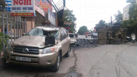 Tuy nhiên, cú bẻ lái quá gấp đã khiến chiếc xe tải chở đá va chạm với 2 ô tô đỗ bên đường, gồm 1 chiếc Kia và 1 chiếc Toyota, trước khi bị lật ngang. Tài xế Đỗ Văn Tiến cũng bị thương, rạn 2 xương sườn và phải đền bù 2 chiếc xe trên.