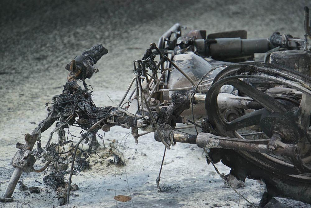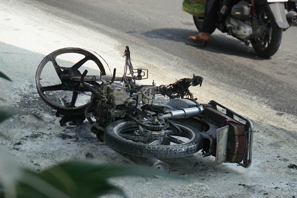 Chiếc xe máy bị cháy đen, hư hỏng nặng