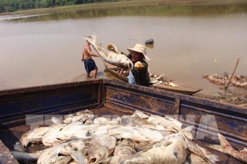 Cá chết hàng loạt ở xã Đa Kia. ẢNH: K GỬIH -TTXVN