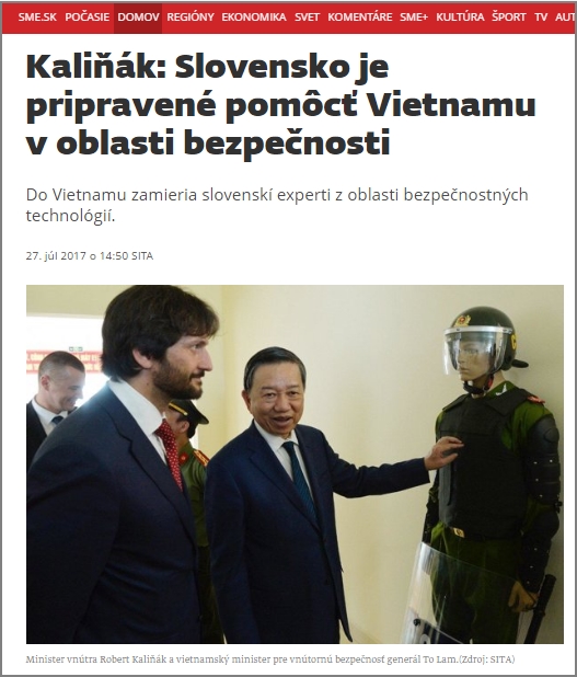 Ảnh chụp bản tin Hãng thông tấn SITA của Slovakia ra ngày 27/07/2017 về việc Bộ trưởng Bộ Nội vụ Slovakia- gặp nói chuyện với ông Tô Lâm - tại thủ đô Bratislava vào ngày 26/07/2017