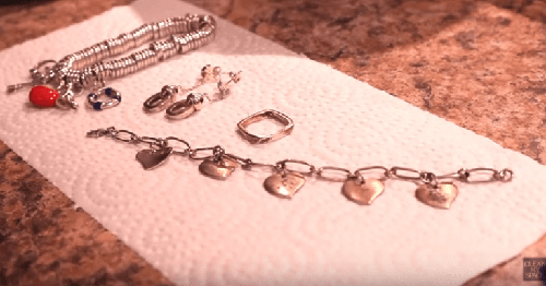 Đồ trang sức đeo lâu ngày, do tác động của muối trong mồ hôi hay những chất tẩy rửa sử dụng hàng ngày khiến cho chúng không còn giữ được vẻ đẹp sáng bóng. Muốn “hô biến” những vết ố bẩn, bạn dùng 1 chiếc bát nhỏ để đựng hỗn hợp nước rửa bát pha lẫn nước khoáng, đánh đều để tạo bọt cho hỗn hợp, rồi cho món đồ trang sức cần làm sáng vào ngâm trong 5 phút. Sau đó dùng bàn chải đánh răng mềm mại tẩy sạch vết bẩn, rửa lại bằng nước, bạn sẽ có món đồ trang sức như vừa “lột xác”.