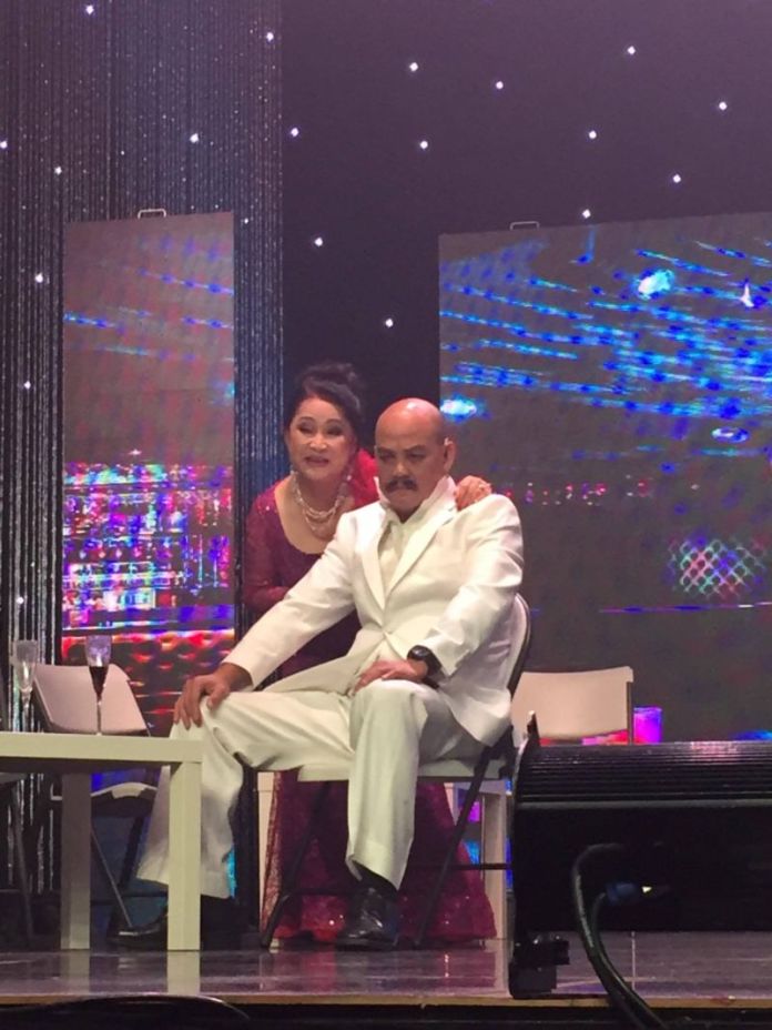 Diễn viên Quốc Tuấn và Trang Thanh Lan trong vở kịch “Vết Thù Trên Lưng Ngựa Hoang” do trung tâm Đỗ Thanh tổ chức hồi Tháng Chín, 2017. (Hình: Quốc Tuấn cung cấp)