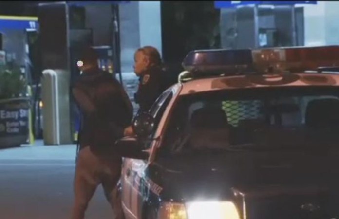 Băng video quay được cho thấy cảnh sát khám người nghi can, và để một số tang vật trên nắp xe phía trước của cảnh sát.