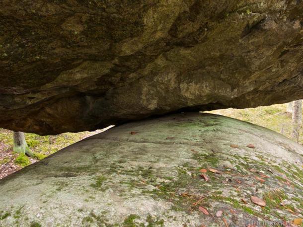Nhìn từ xa, người ta có cảm giác, hòn đá phía trên có thể lăn xuống đất bất cứ lúc nào. Nhưng điều này không xảy ra. Ngay cả khi con người tác động lực lên chúng, tảng đá phía trên vẫn không hề nhúc nhích.