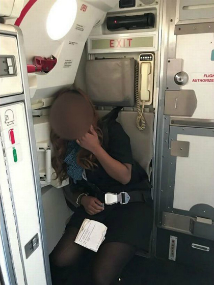 Theo lời kể của hành khách Erika Gorman, một nữ tiếp viên xuất hiện trong tình trạng say xỉn và bất động. Nữ tiếp viên còn chửi thề và dọa khách: “Nếu dây an toàn của mọi người không chắc, mọi người chết chắc”, khiến nhiều hành khách hoảng hốt. Tình huống đã được báo cáo với phi công để xử lý kịp thời.