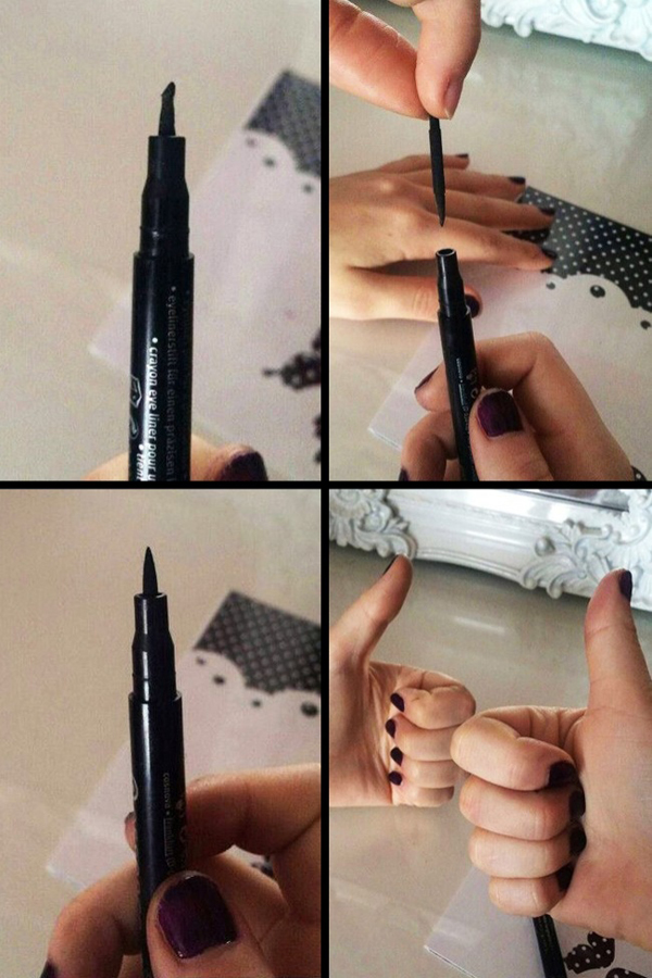 Khi bút dạ kẻ mắt bị khô hay gần hết mực, hãy thay ngược đầu bút để tiếp tục sử dụng trước khi có thời gian đi mua cây mới.
