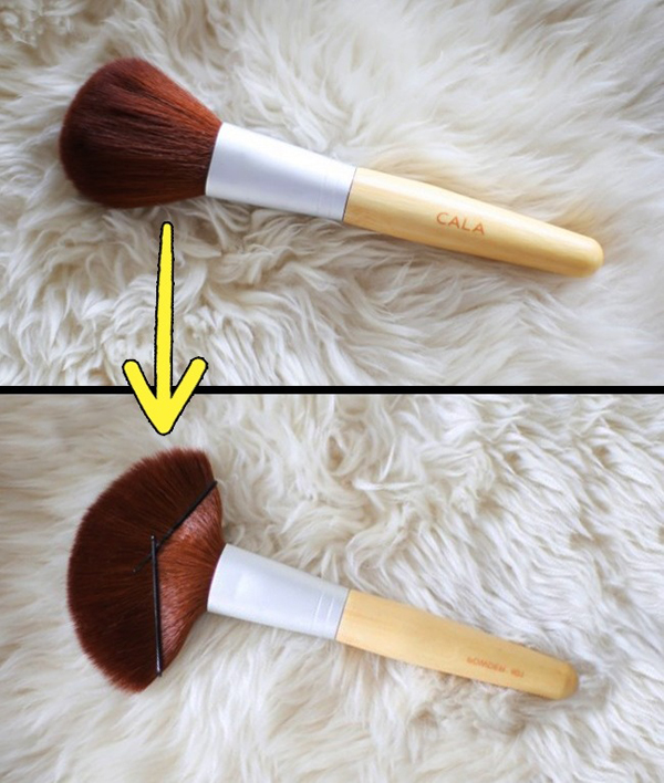 Nếu không có cọ tán phấn má hoặc cọ tán phấn tạo khối, bạn có thể dùng hai chiếc cặp tăm để tạo hình lại cây cọ.