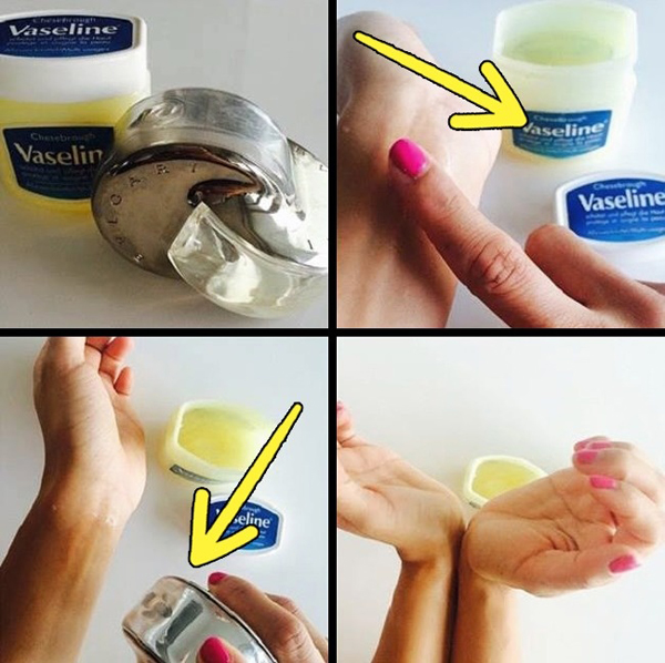 Để giúp nước hoa giữ hương thơm lâu, bạn hãy thoa một lớp vaseline lên da trước rồi mới xịt nước hoa lên trên.