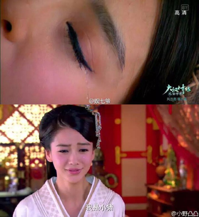 Mới đây, hình ảnh cũ của cô nàng bị lục lại, một lần nữa khiến khán giả choáng váng vì không thể tin nổi một diễn viên chuyên nghiệp, hoạt động lâu năm trong giới giải trí lại có thể dùng thuốc nhỏ mắt cho các cảnh quay khóc lóc. Hình ảnh này khiến bà xã của Huỳnh Hiểu Minh bị chỉ trích là kém cỏi, thiếu chuyên nghiệp.