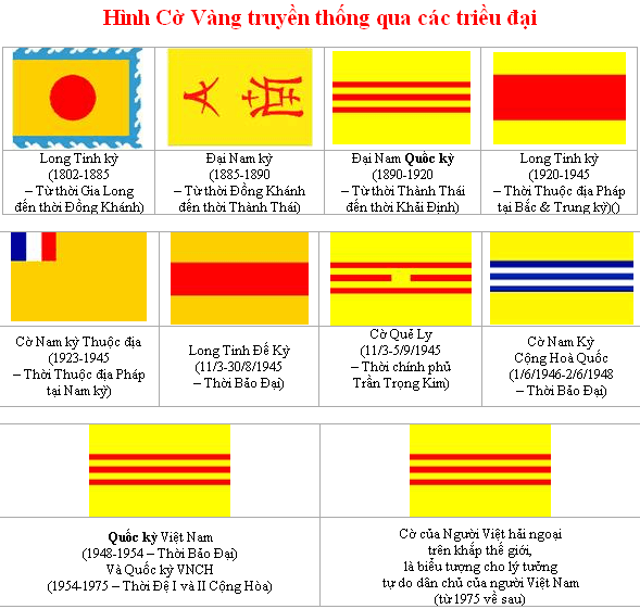Tinh thần của 1 đân tộc thường thì tiếp nối qua lá cờ. Ai cũng có thể hiểu, chính trị sẻ luôn biến chuyển theo nhịp điệu của thời gian... Chiếc áo không làm nên thầy tu. Vì lẻ đó, màu cờ nào có thể sẻ 1 lần nữa xuất hiện ở VN trong tương lai thì không quan trọng cho lắm, sự mong muốn quyết định của người dân Việt là làm sao có được 1 nước Việt-Nam không độc tài = 1 nhà VN tự do trong mọi khía cạnh được đặt dưới 1 luật pháp minh bạch và 1 nhân quyền được thế giới công nhận và ủng hộ.