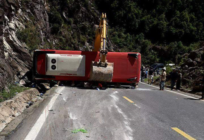 Công an giao thông huyện Khánh Vĩnh cho biết xe khách biển số TP.HCM chạy hướng Đà Lạt về Nha Trang, khi đến Km 56, đèo Khánh Lê thì bị nạn.