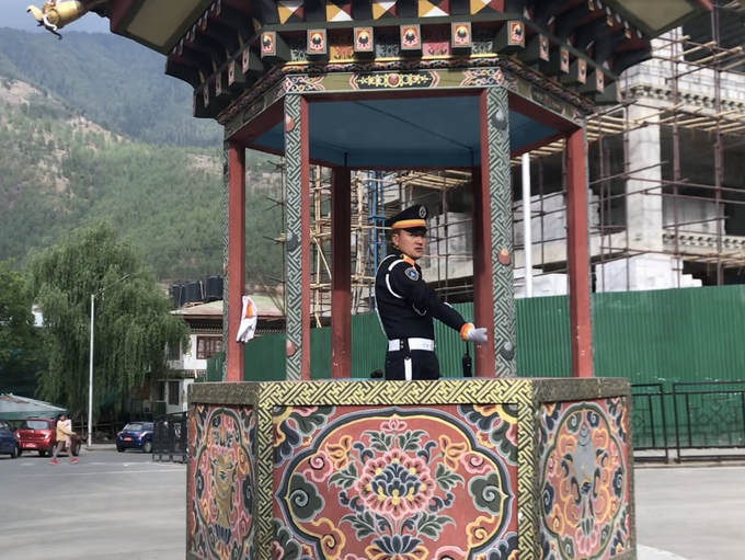 Nếu như bình thường cảnh sát giao thông phân làn khi đèn hiệu không làm việc, ở Thimphu những "đèn giao thông" người này lại là một điều thu hút du khách. Các chốt làm việc của cảnh sát trên phố trở thành điểm du lịch.
