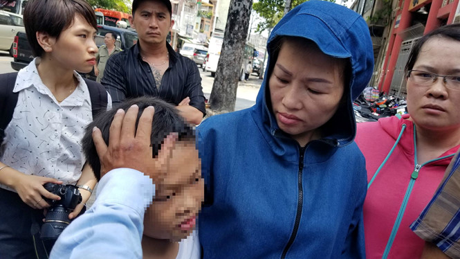 Khi chiếc xe chở quan tài đi vào cổng Trung tâm Pháp y, bà Nhung như cố sức bước đi theo các cán bộ công an vào nhìn mặt con trai của mình lần cuối. Nước mắt bà liên tục chảy dài dưới chiếc mũ bành và khẩu trang ướt nhèm vì nước mắt như giấu và kìm nén lại nỗi đau, mất mát quá lớn.