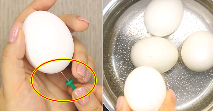 Cách bóc trứng luộc nhanh và đơn giản nhất bạn đã biết chưa? Bạn chỉ cần chọc cây kim vào quả trứng trước khi luộc thì khi bóc sẽ nhanh hơn. Bóc trứng không còn bị dập nát và mất thời gian nữa nhờ các mẹo hay khác nhau.