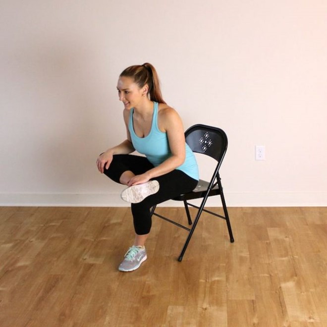 Một bài tập ngồi tại chỗ đơn giản và hiệu quả khác chính là gác chân. Chỉ cần bỏ giày ra, gác mắt cá chân này lên đầu gối của chân còn lại là chân bạn đã được thư giãn đáng kể rồi. Nếu muốn căng dãn chân hơn nữa, hãy nghiêng người về phía trước trong khi đang thực hiện tư thế này và đổi bên liên tục để hai chân được thư giãn một cách đồng đều.