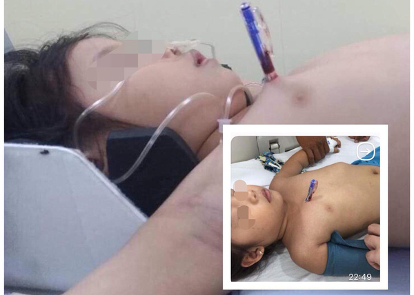Hình ảnh bé gái 4 tuổi ở Long An bị bút bi đâm thấu ngực khiến ai cũng hoảng sợ. Đây cũng là cảnh báo đến các bậc cha mẹ khi cho con cái chơi những vật sắc nhọn. Hiện bé gái đã qua cơn nguy kịch.