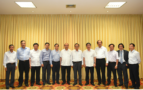 Giáo sư Trần Văn Thọ (người thứ 2 từ phải sang) cùng các thành viên Tổ tư vấn kinh tế của Thủ tướng. Ảnh: VGP