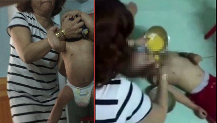 Trước đó, mạng xã hội Facebook đăng tải 2 đoạn clip đều ghi lại cảnh 2 người phụ nữ bạo hành trẻ. Một người mặc đầm trắng kẻ đen và một người khác mặc áo màu đỏ dài tay, bắt 2 bé trai cởi trần nằm ngửa dưới sàn nhà rồi đưa thức ăn vào miệng trẻ.