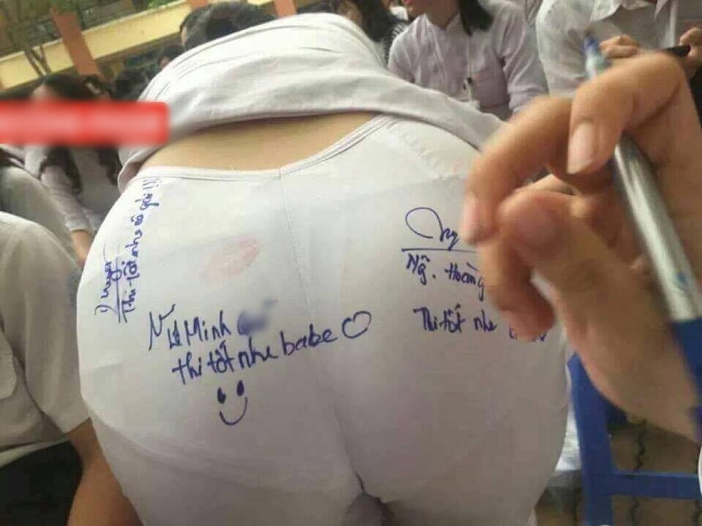 Hình ảnh nữ sinh mặc áo dài phản cảm dịp cuối năm gây nhức mắt
