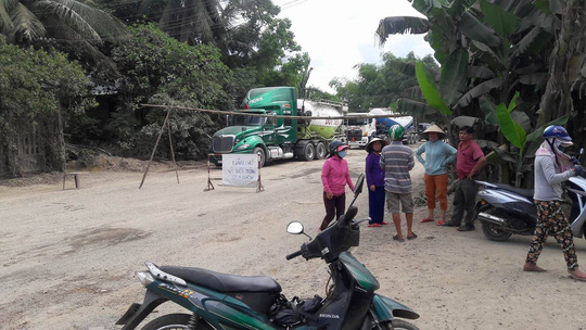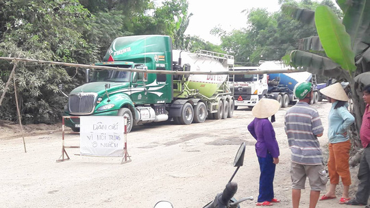 Vì quá ô nhiễm, người dân đã bức xúc dựng rào chắn xe tải chở đá.
