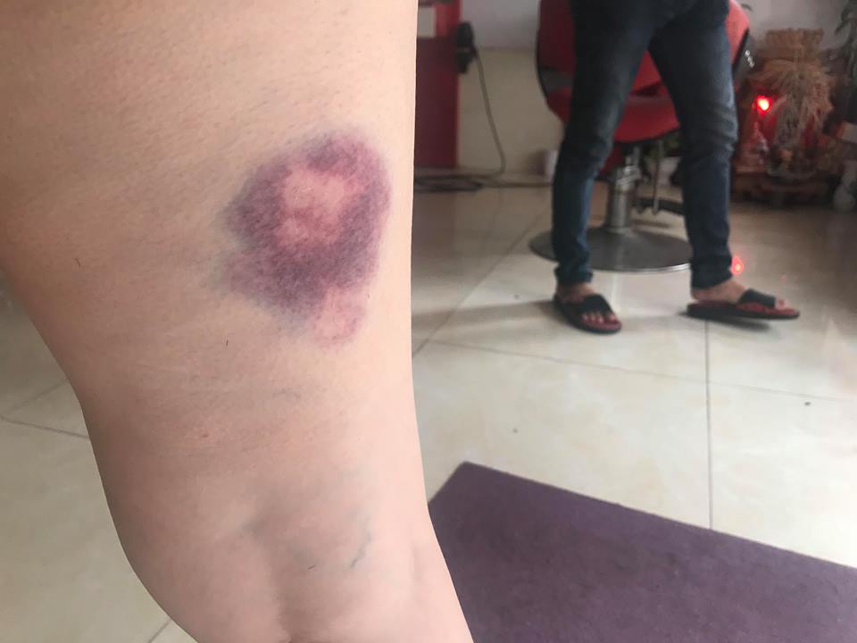 Vết bầm tím sau sự việc ở chân chị Hương.