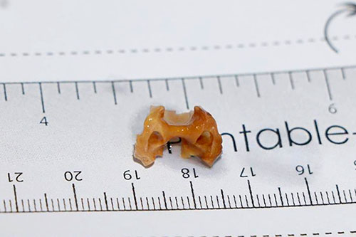 Mảnh xương gà sau khi được gắp ra. Ảnh: Đ.H