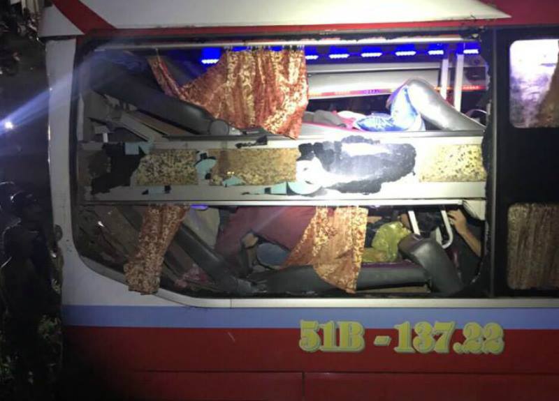 Thông tin ban đầu, vào thời điểm trên, xe khách giường nằm BKS 51B- 107.22 của nhà xe Thu Hà, lưu thông trên QL14 hướng Đắk Nông đi TP.HCM. Khi đến trước cổng trụ sở UBND xã Quảng Tín, xe giường nằm dừng bắt khách thì bất ngờ bị xe ô tô đầu kéo BKS 51D-1574.3 (chưa rõ danh tính tài xế) lưu thông cùng chiều tông mạnh vào phía đuôi.