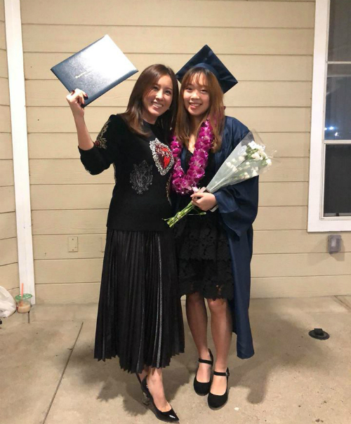 Hoa hậu Thu Hoài đến trường chúc mừng con gái trong ngày tốt nghiệp.