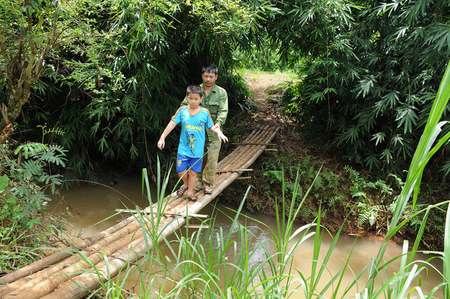 Cổng nhà bị xây chắn, hàng ngày ông Nhất phải băng rẫy, đi qua cầu tạm