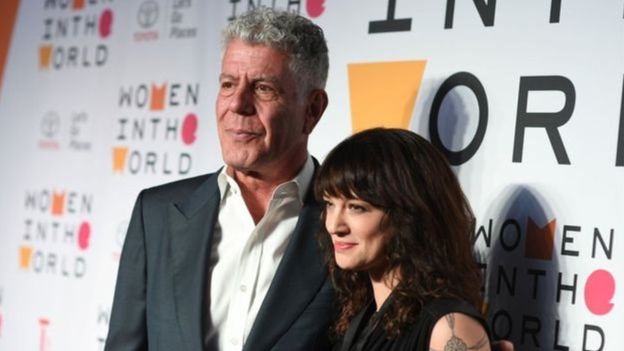 Đầu bếp Bourdain có quan hệ tình cảm với diễn viên người Ý cô Asia Argento.