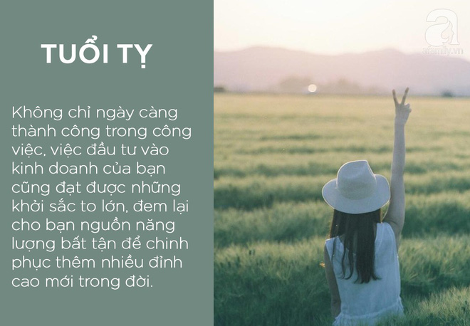 Tháng 6 này những bạn sinh nhằm tuổi Tỵ sẽ sở hữu vận mệnh có thể nói là tốt nhất trong suốt cả năm 2018. Không chỉ ngày càng thành công trong công việc, việc đầu tư vào kinh doanh của bạn cũng đạt được những khởi sắc to lớn, đem lại cho bạn nguồn năng lượng bất tận để chinh phục thêm nhiều đỉnh cao mới trong đời.