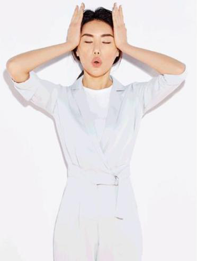 Dùng phần thịt đầy đặn nhất của lòng bàn tay (ngay chỗ ngón cái) ép vào 2 bên thái dương với động tác kéo lên trên. Đồng thời, miệng tròn lại như đang phát âm chữ “hô” và chu nhọn ra.