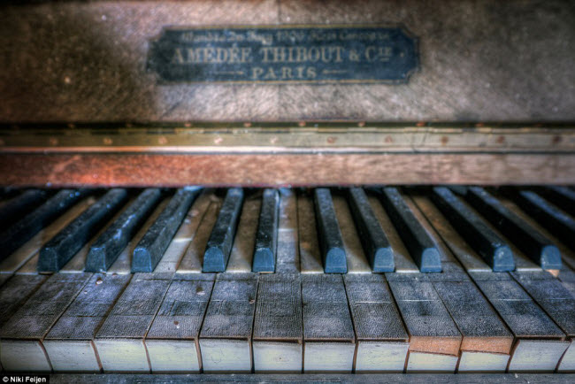 Bụi phủ kín những phím đàn piano không được sử dụng nhiều năm.
