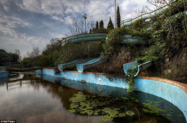 Công viên nước từng là nơi giải trí của trẻ em và người lớn, nhưng hiện bị thiên nhiêm xâm chiếm.