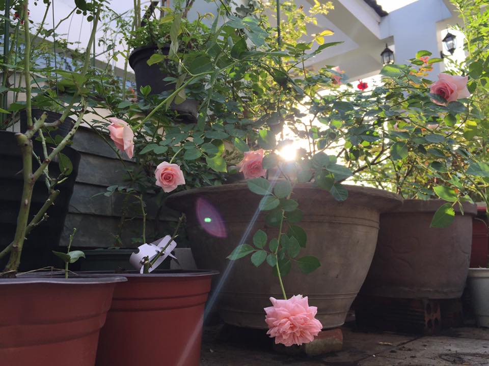 Ban công đầy nắng đủ cho hồng thêm rực rỡ.
