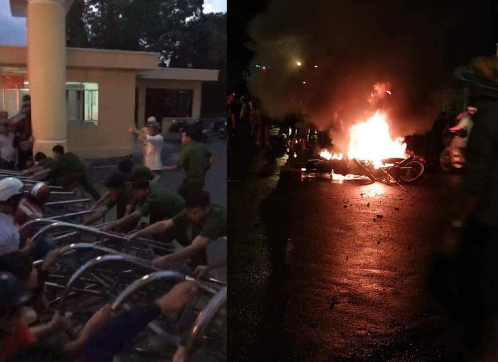 Người dân đốt xe và xông vào cổng UBND tỉnh Bình Thuận.