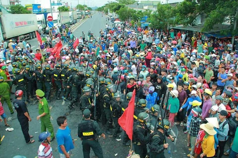 Cùng ngày, tại quốc lộ 1 (thuộc thị trấn Phan Rí Cửa, huyện Tuy Phong, Bình Thuận), nhiều người dân nơi đây tụ tập kéo đến chặn xe để đập phá. Những người dân này bị kích động nên ném đá, đập xe, xông vào đánh lực lượng an ninh.