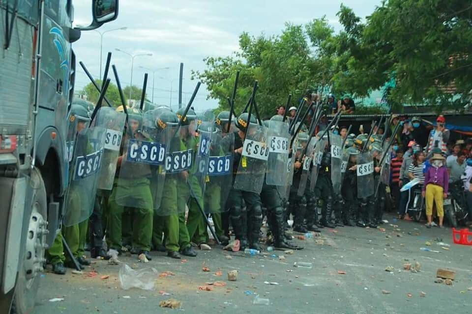 Lực lượng an ninh bị người dân quá khích ném đá tại Phan Rí.